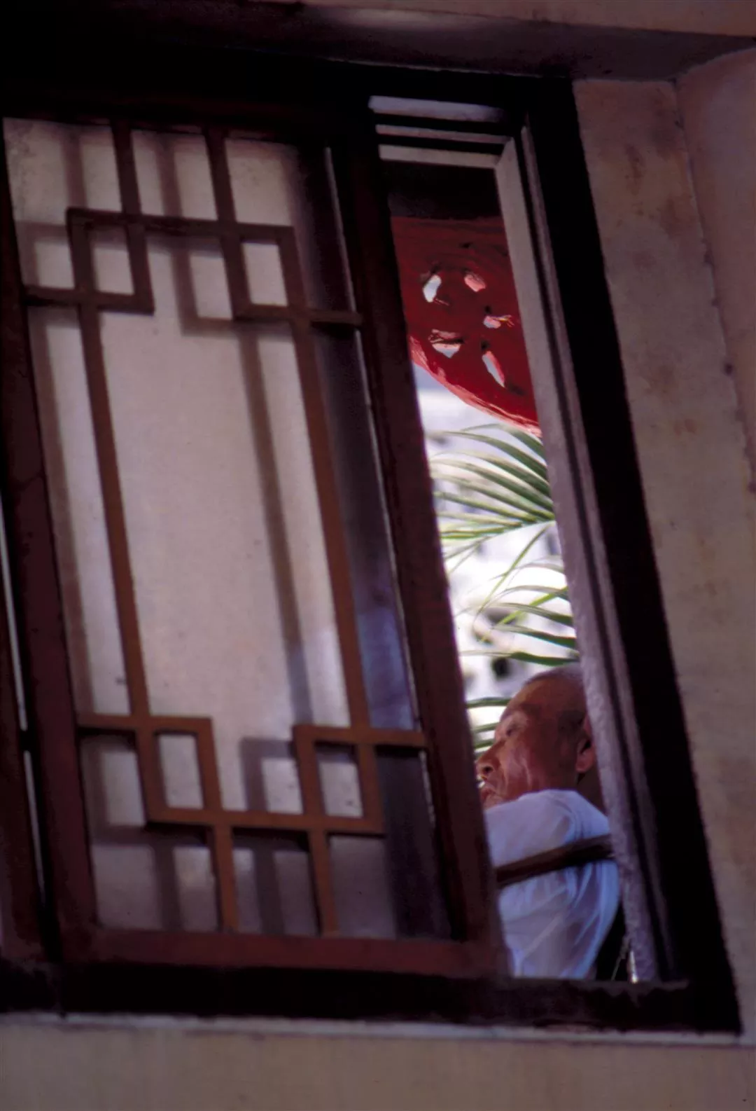 偎在窗邊納涼休憩的台西老人。(鐘永和)