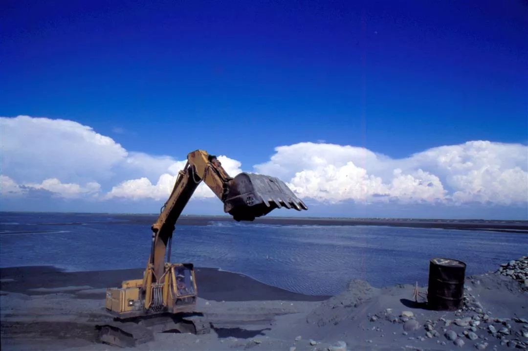 開發海埔地的工程艱鉅,挖土機是好幫手。(鐘永和)