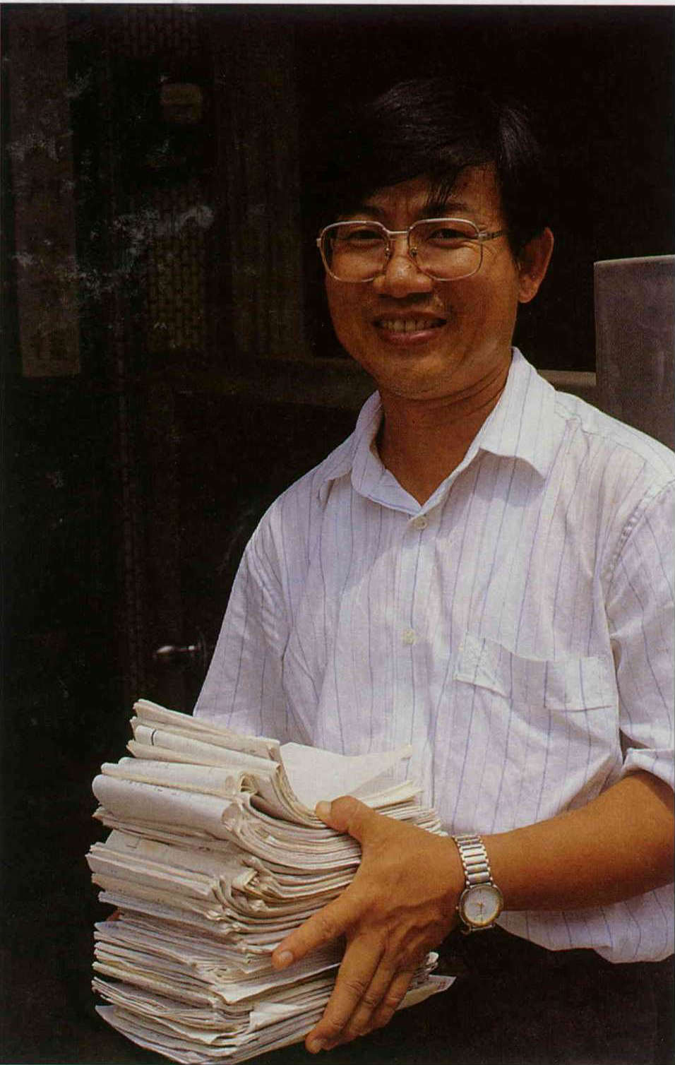 早上八點之前,四十三歲的洪敏聰一如公務人員準時上班。現任澎湖縣政府社會科社會行政股股長的他,負責縣內一百三十多個人民團體的管理、溝通以及墓地遷葬火化推廣等工作。批完近一尺高的公文,下午他還要去參加幾個社團的會員大會。人們口中戲稱「穿得水水,吃得肥肥,裝得錘錘」的公務員寫照,完全不適合用在他身上。好不容易忙完公事,回家取了錄音機、筆記本,就趕著搭上馬公往西嶼的公車。