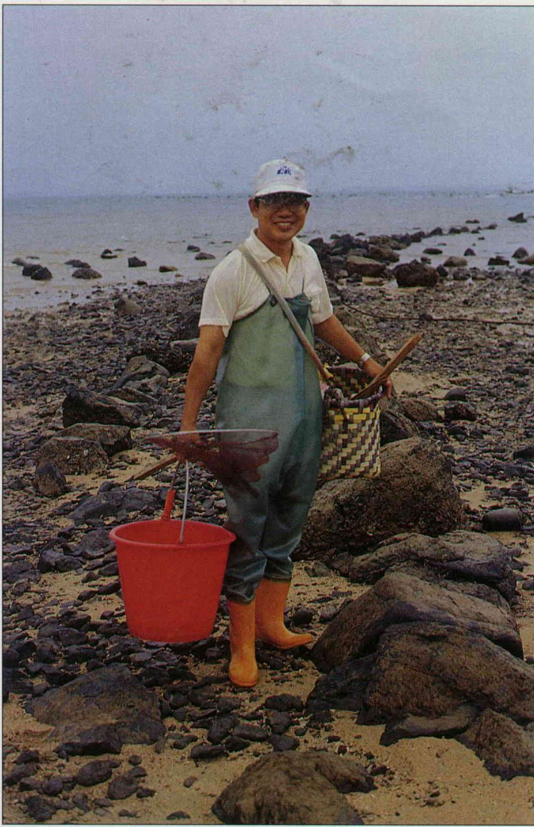 不用船隻,洪敏聰就用最簡單的「落海」方法,在潮間帶或揀或釣或放網來完成自己的西嶼沿海水產調查。