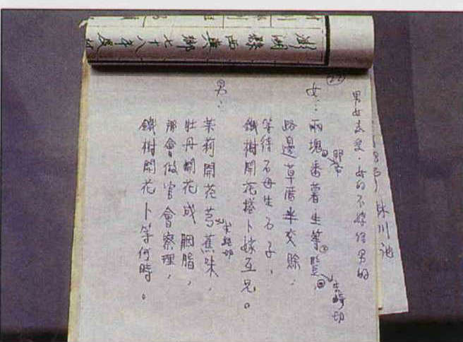 在不能下床、不能走動的情況下,他就和同病房的幾位阿公們動起嘴巴對起褒歌來,筆記裡於是出現了三首採集於海軍醫院的褒歌。