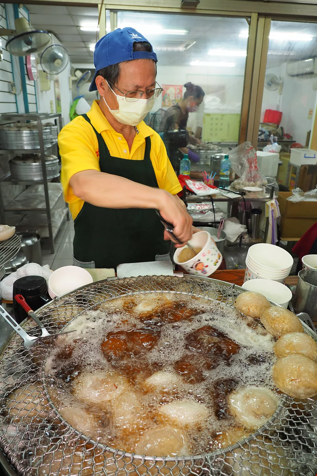老闆張凱偉年輕時是舉重選手,即使現在不在訓練場上,對炸肉圓也力求完美呈現。他在油鍋旁放著一小盆粉漿,因冷凍後的肉圓表皮有裂縫,所以肉圓下鍋前,他會用少許粉漿填補,避免油炸時變形。對張凱偉來說,當客人說他的肉圓好吃,那份肯定與當初他在場上的榮耀,都同樣珍貴。