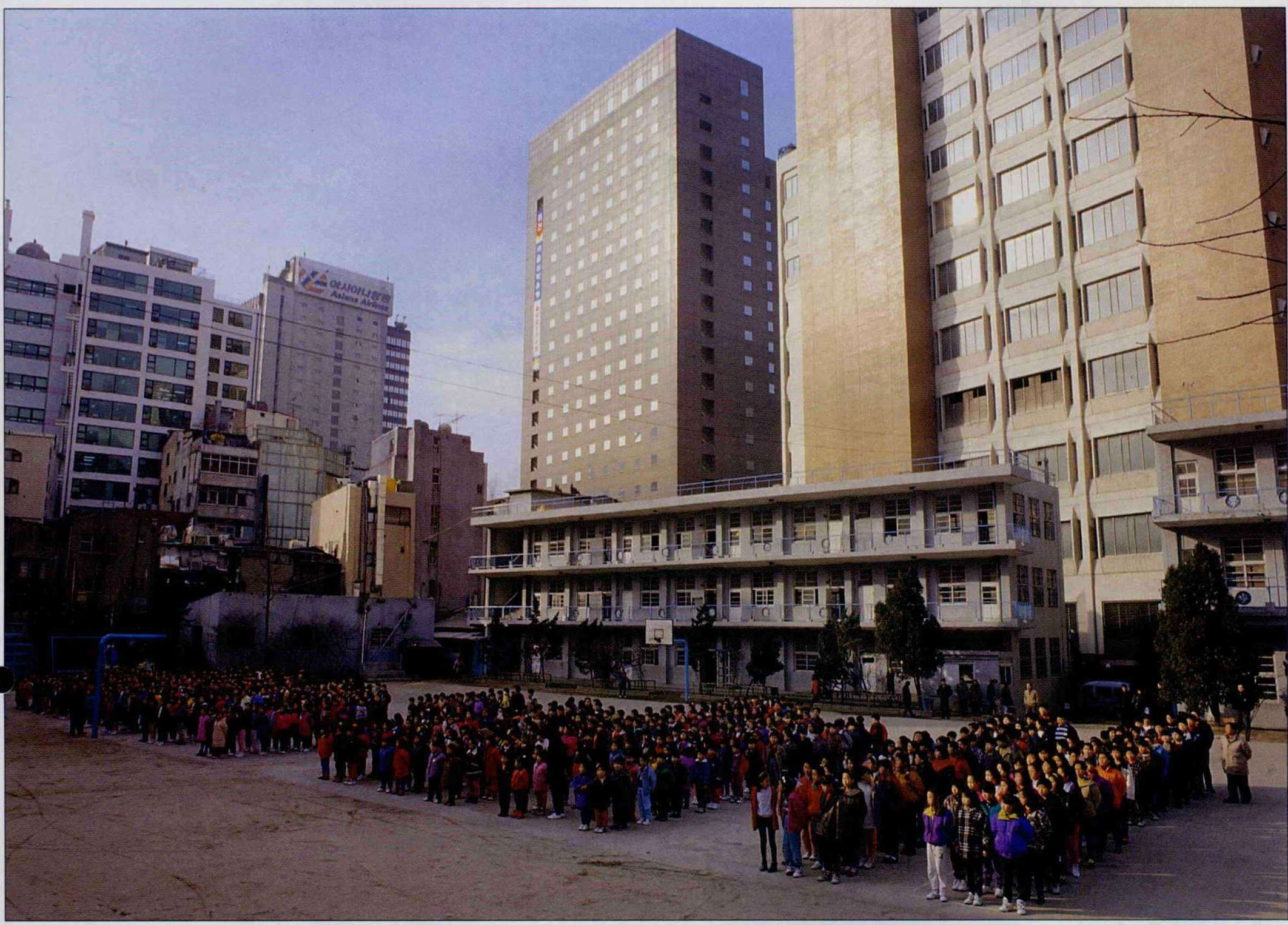 漢城小學,位於漢城市中心的中心——明洞。首屈一指的樂天、新世界、美都波百貨公司、市政府大廳、中央郵政局都在這一帶。而漢小和我們的大使館隔牆為鄰,「就像眼睛看鼻子」老師們形容就這麼近。