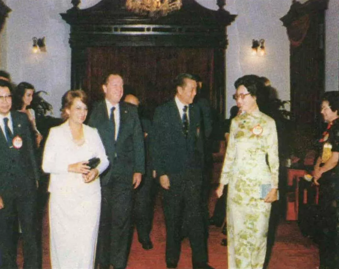 十日晚間,卡拉索總統伉儷由我行政院長孫運璿夫婦陪同,參加外交部在台北賓館所舉行的國慶酒會。(高稚偉/李培徽)