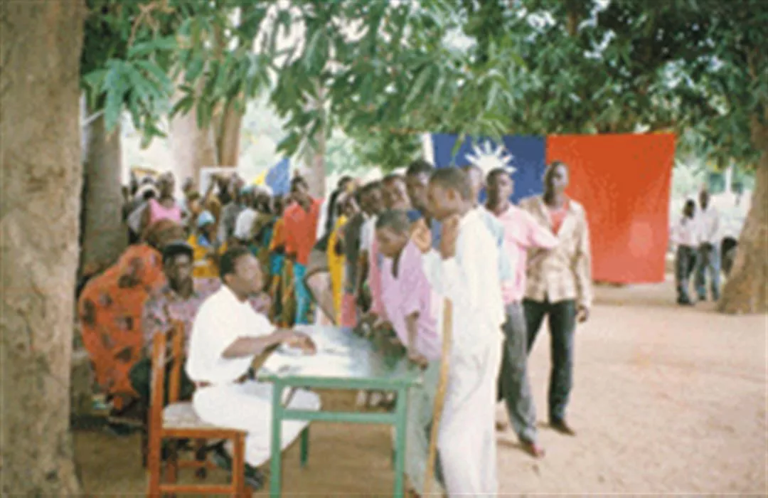 一九六○年代起,國合會醫療團開始派駐非洲友邦,在當地頗受肯定。圖為查德民眾井然有序地排隊掛號,準備接受國合會駐當地醫療團的義診。(國合會提供)