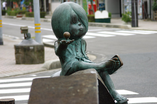 另一個漫畫造鎮的例子則是鳥取縣的境港市,此處原也只是個偏僻的小鄉鎮,但由於是名作《鬼太郎》作者水木茂的故鄉,成了最佳觀光資源,從小鎮的派出所、店家招牌,甚至地上的人孔蓋,處處可見漫畫蹤影,更有「眼珠老爹」、「鼠男」、「貓女」等上百座的角色雕像盛大迎接遊客,每年都有超過千萬人搭著從鄰近的米子市開出的「鬼太郎列車」前來拜訪,也帶動地方旅遊經濟。