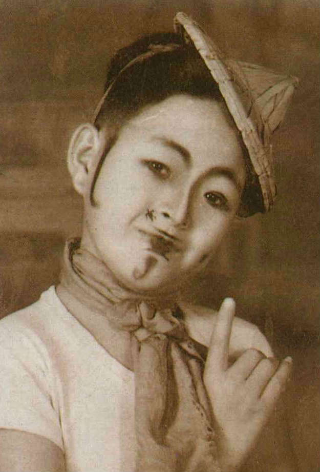 翻找出這張舊照片-十二歲時扮演丑角,江清柳不禁笑了。(江清柳提供)