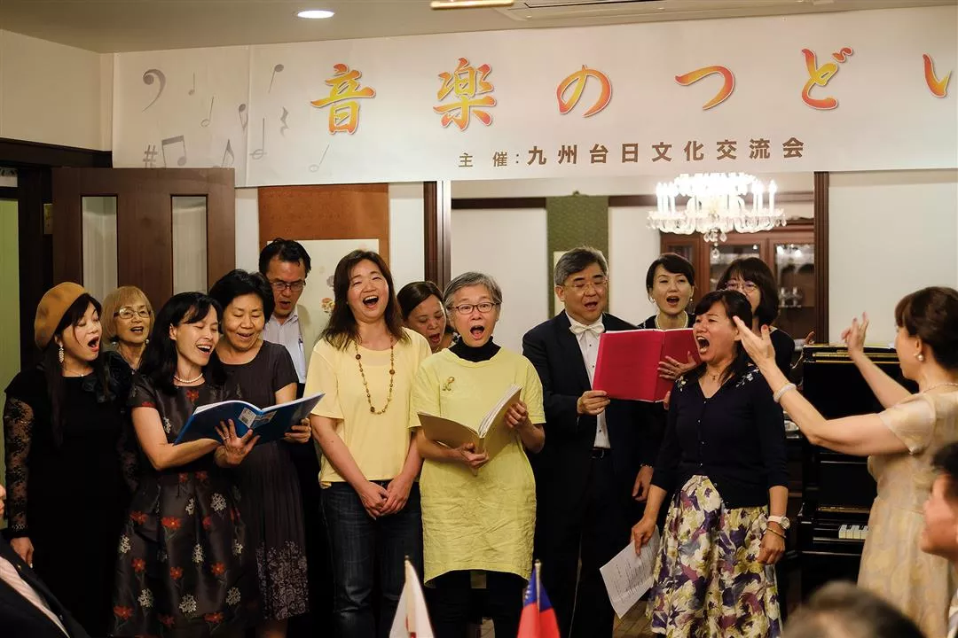 見到九州台日文化交流會會長本郷啟成(吳啟成),才知曉當晚的音樂表演全由他一手籌備,邀約剛接任基隆礦工醫院院長兼聲樂家的劉立仁、旅日的聲樂家吉川千巧(林千巧)及福岡歡喜合唱團表演。當晚還有大島組株式會社大島英二會長一家及報社記者共襄盛舉。一整夜的音樂饗宴,日文、中文、閩南語、義大利文等多語種,最後一起大合唱台灣的鄧麗君、日本的美空雲雀都演唱過的名曲「時の流れに身をまかせ」(中文版歌名:我只在乎你)。