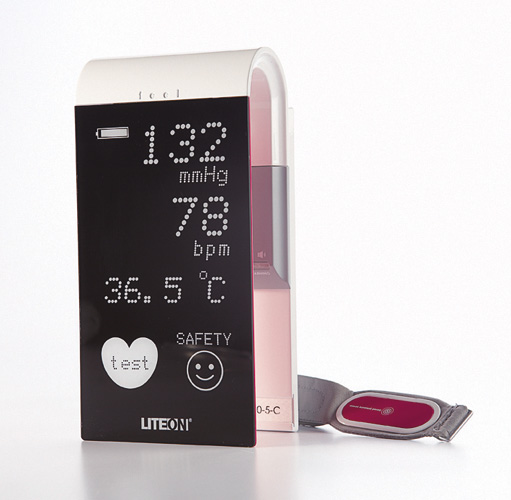 2007年的創意獎銀賞作品《感受》,是新一代血壓器,能自動偵測體溫、血壓,方便自用或護理站使用。