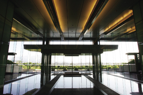 (下圖)占地3,000坪、23層樓高的光寶科技總部,外型設計如雙手合十朝天,代表光寶永續經營中的一顆謙卑祈福的心。