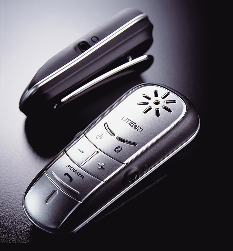 光寶《BSK-100》藍芽耳機麥克風,可別在衣領或口袋上接聽手機並發話。這項運用藍芽技術與優異設計概念的產品已進入量產階段,並為今年德國iF獎得獎作品。