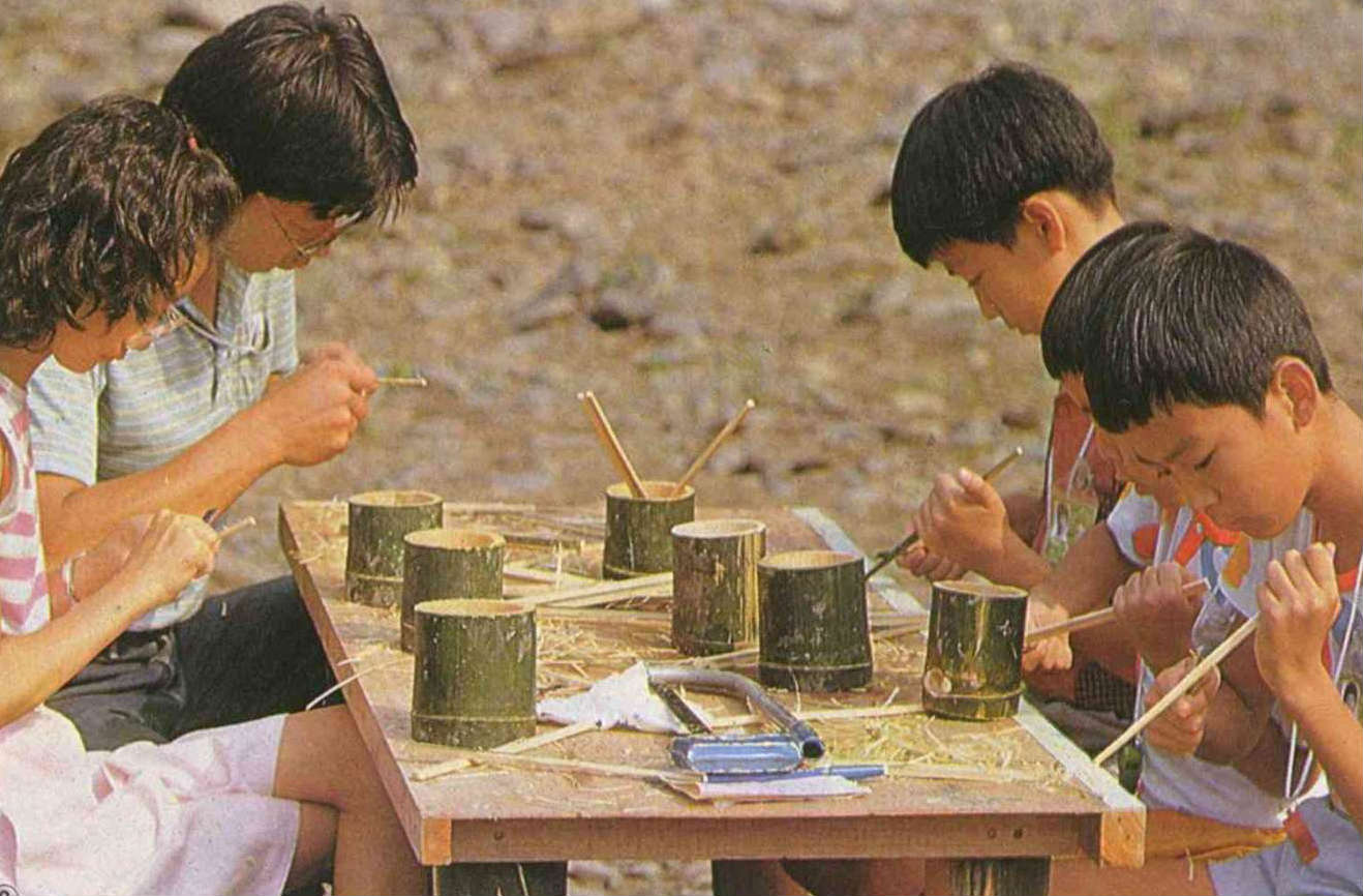 圖1.2:大自然夏令營的兒童,用竹子製作手工藝品。(各夏令營提供/楊永山)