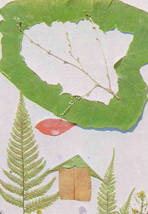 在「自然貼畫」時間裡,沒有彩色筆、水彩和顏料,而是孩子們去採野花、撿野果、拾落葉來做材料,把花葉揉碎後的汁液當做顏料,自由地創作。