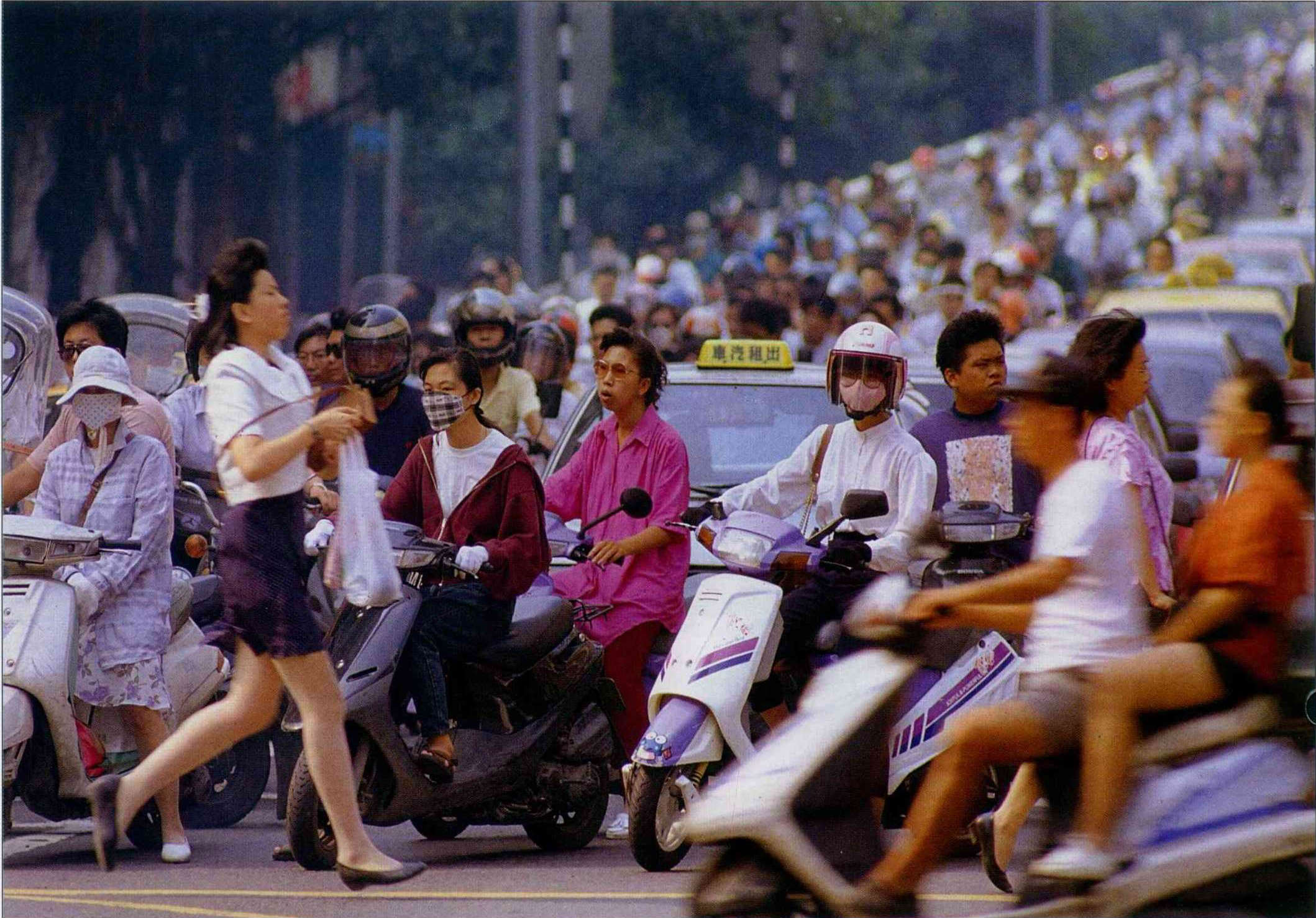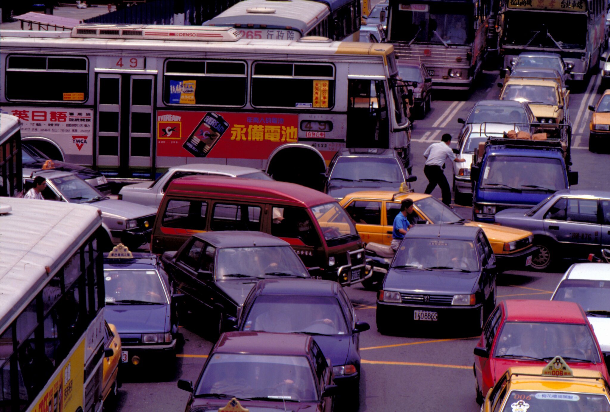 每天超過一百四十萬輛的汽機車湧上台北街頭。十字路口萬車齊發,濃煙滾滾。捷運陸續開挖,四線道馬路一線線封閉。大公車、小汽車、機車與行人共一狹窄車道東閃西躲,一同「攜手共渡交通黑暗期」。
