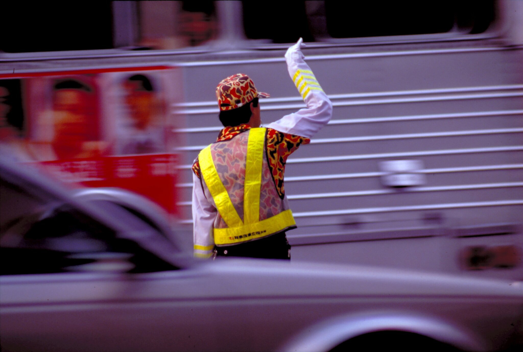 台北街頭像戰場?十字路口,萬車齊發,濃煙密佈,硝煙滾滾。人人謹遵「綠燈衝、黃燈跑,紅燈供參考」守則,大車欺負小車、小車吃定行人,行人逃命般四處流竄。