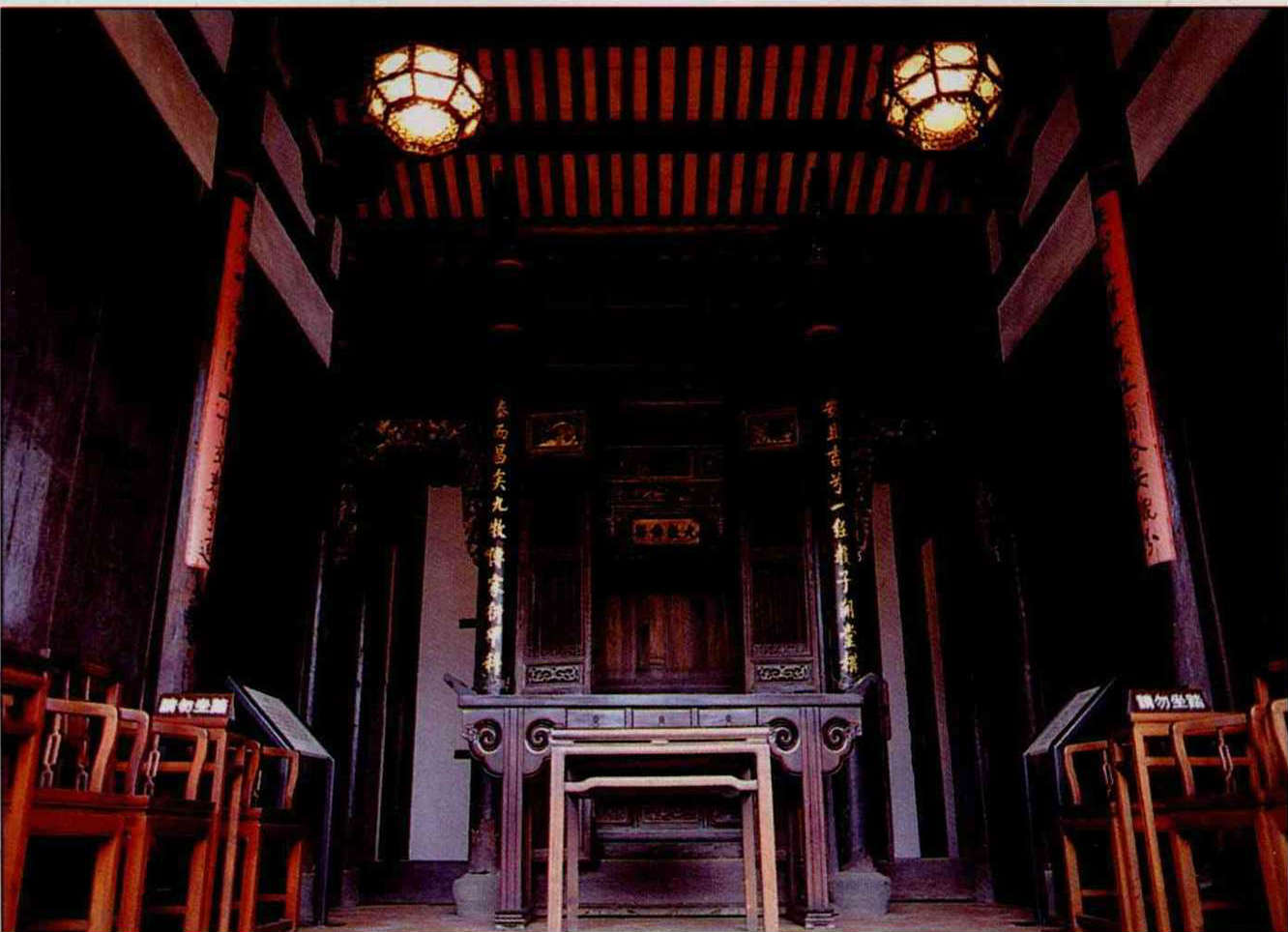 ﹙左﹚林安泰古厝的骨架雖安在,然而少了祖先牌位的香煙繚繞,老屋也顯得無精打彩,僅留空殼供人瞻仰憑弔。