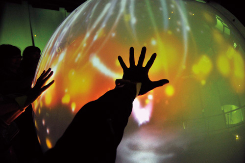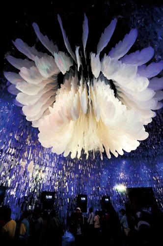 (上下圖)花博展館中,唯一沒有真實花草植栽的「夢想館」,卻是最具尖端科技實力的數位互動展館,並結合藝術家的創意,藉科技讓大自然的開花、授粉等過程分毫畢現。
