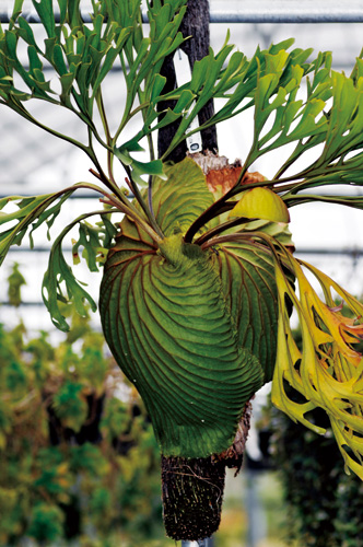 「外行看熱鬧,內行看門道」,不是色彩繽紛就叫好,不起眼的小東西,很可能才是園藝家眼中的寶。圖由上而下:荷葉鐵線蕨、猴腦鹿角蕨(薛繼光攝),會隨聲光起舞的保育植物「跳舞草」、像毛怪一樣的「老樂仙人掌」,以及已有1,500年樹齡的真柏盆景、。