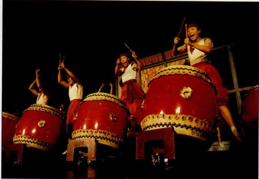 日本話裡「太鼓」就是大鼓的意思,以往在民間祭儀中用來驅除天災疾病和惡靈,或用於戰爭、火災通告等非常場合。一九六○年代日本興起尋根熱,一群東京的都市人來到素有「民俗之島」之稱的佐渡島,跟當地人學習傳統手工藝和打鼓。他們以海邊一所廢棄的小學做基地,開發出一套耐力訓練和技巧鍛鍊:每天長跑五千公尺,打鼓時從身體、呼吸到手部肌肉的調節都有特別的要求,從而塑造出國際知名的「鬼太鼓」,或稱為「神鼓童」。