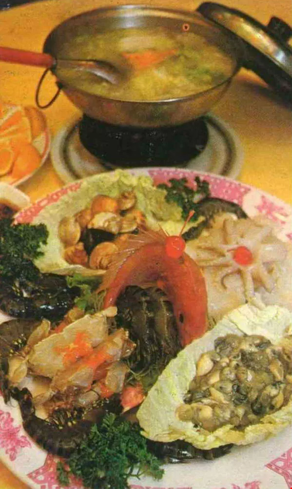 冬天一到,各海鮮店紛紛推出海鮮火鍋。海鮮火鍋的材料有:魚、蝦、蟹、蚵、花枝、蛤蜊等。