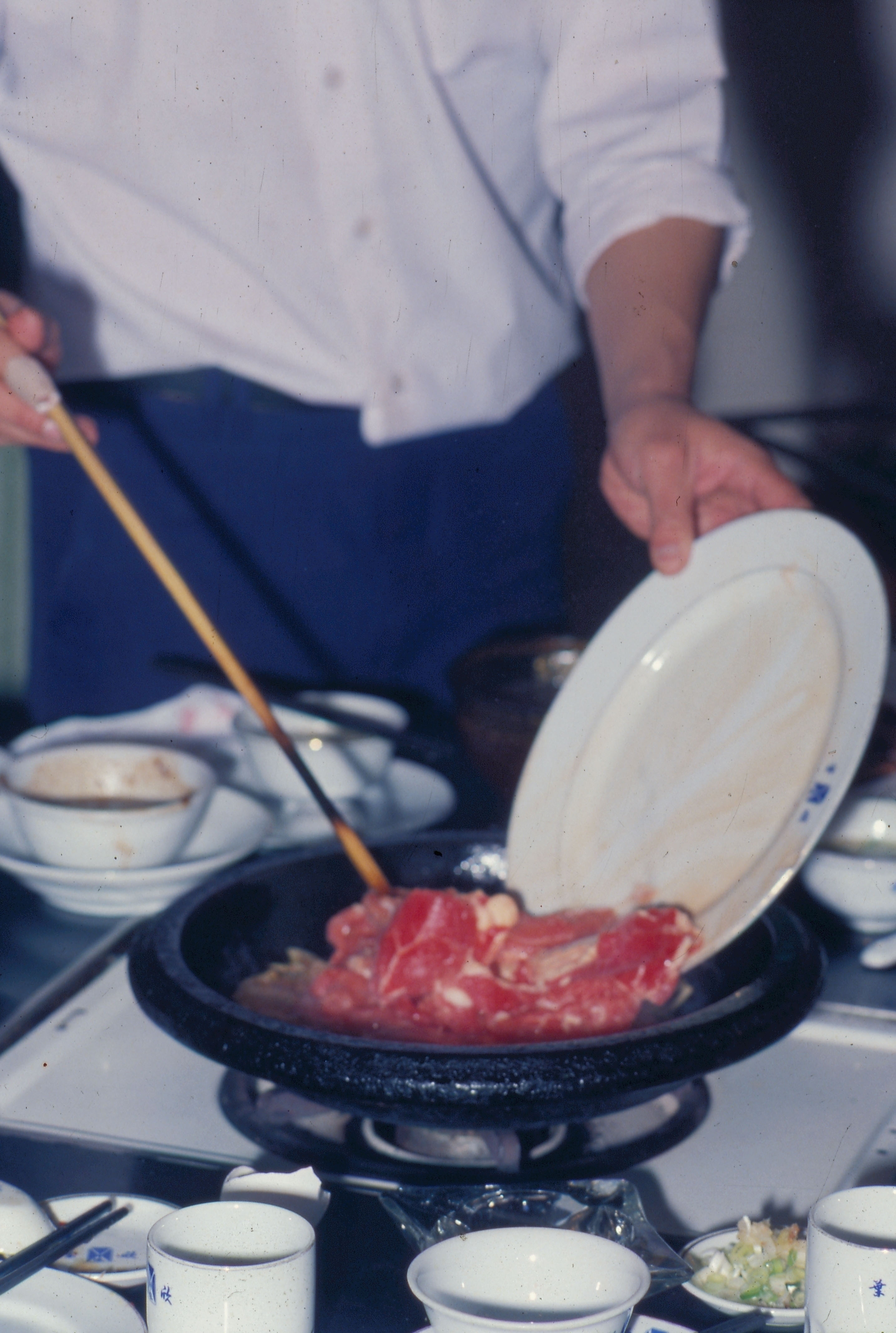 吃火鍋如果是吃「涮肉」的話,肉類都應該切得愈薄愈好。所謂涮肉,就是用筷子把一片肉夾到沸水之中,搖燙一下立即離鍋。如果肉切得太厚,煮的時間過短則太生,過久則太老,就吃不到肉類那股鮮嫩的味道了。