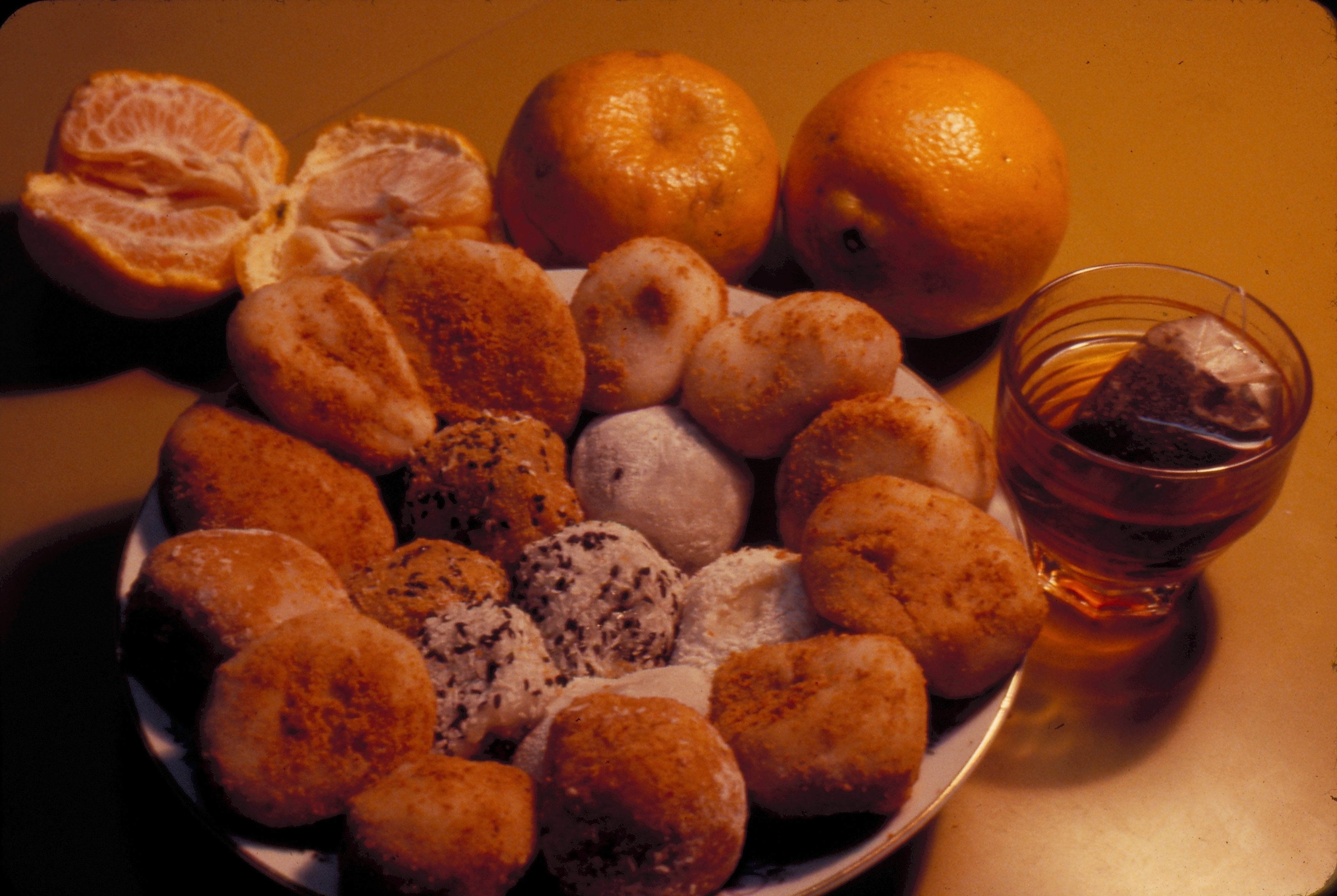 吃過火鍋後的點心——橘子、糬和紅茶。