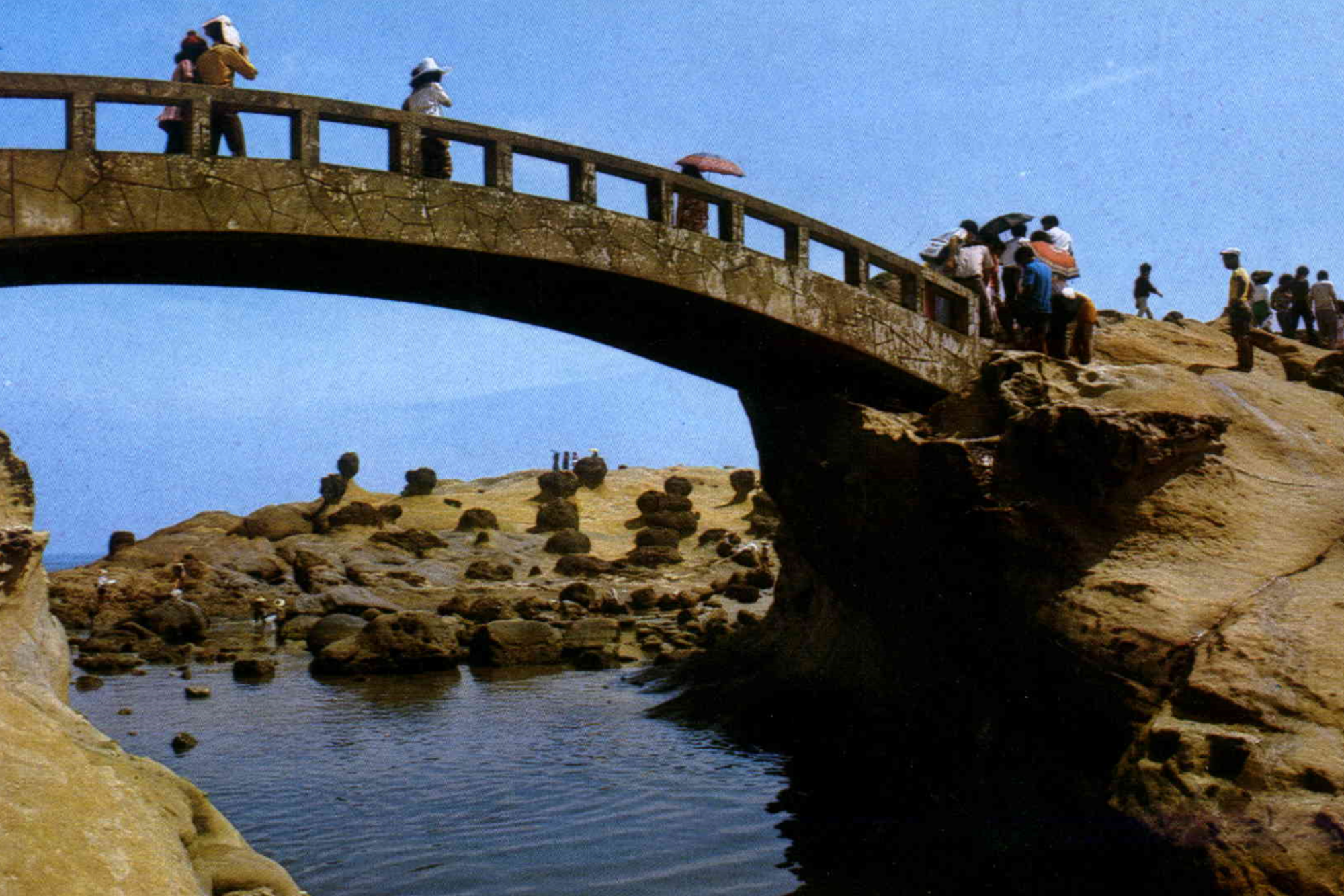 野柳位於台北縣萬里鄉東北海濱,一條長長的山岩,突入海中,形成半島,名為野柳鼻,亦稱野柳龜,長約一千七百公尺,寬約二百公尺,最窄處不及五十公尺。半島中段的岩石,經過千萬年海水與風雨的侵蝕,形成無數奇奇怪怪的石花,像人、像獸、像物,形形色色,非常有趣。野柳的美,在於壁立的陡石,也在於被海侵蝕,構成各種形態的寬平岩床,形成一些狹長的海蝕溝,因此,整個野柳遊覽區內建有十幾座小橋,讓遊客跨越在溝與溝縫間,俯視下邊的奇石嶙峋。野柳濱海也有奇妙的生物,像木瓜魚、紅龜鱘、海星、珊瑚和貝殼。